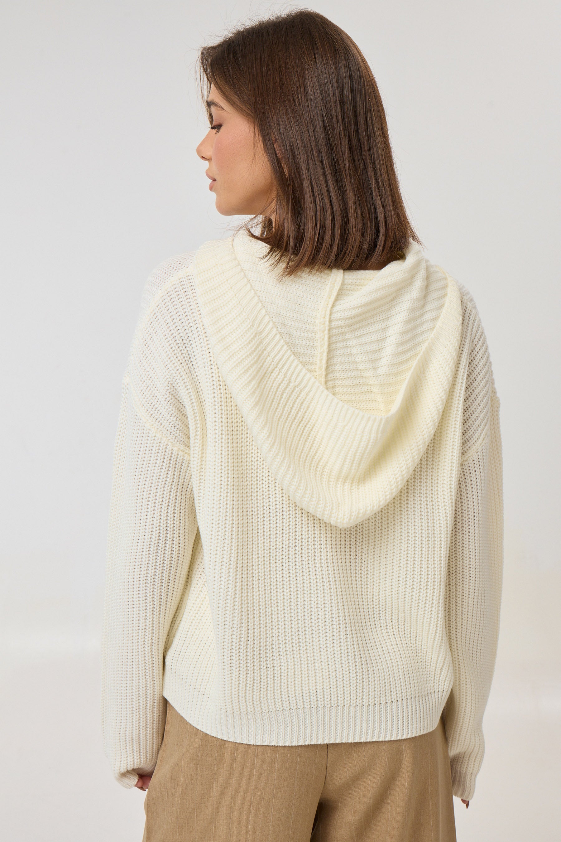 סריג בשילוב כובע קפוצ'ון עם טקסטורה ושרוולים ארוכים.